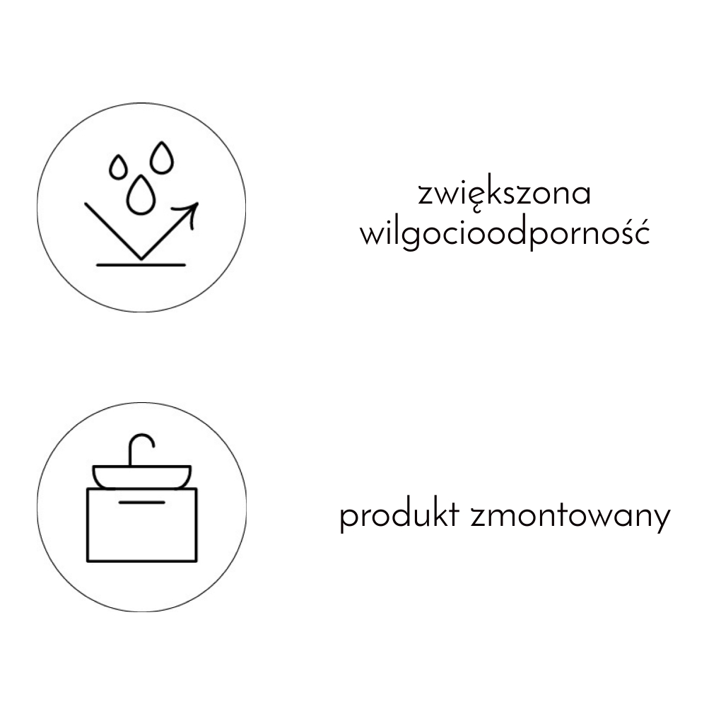 Zestaw zawiera szafkę i umywalkę (bez korka, syfonu i baterii, które można dokupić oddzielnie).