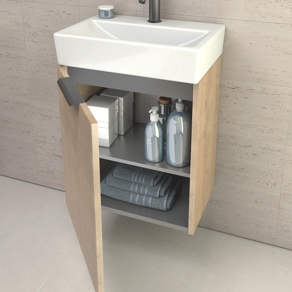 PACK 45cm Szafka łazienkowa z umywalką, dąb ryflowany